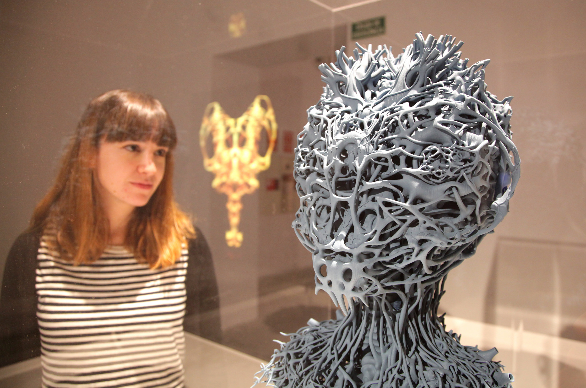 Another artwork on display is by Belgian artist Nick Ervinck. For AGRIEBORZ he used images of human organs that he found in medical manuals as construction material for creating organic forms, and then realized them in 3D. With his work he is questioning, on the one hand, the impact of rapid prototyping and 3D printing for medical research and, on the other hand, the influence of bioprinting technology in generating organs. Ervinck, who is working parallel to science, is developing new realities for different audiences in art, science, and beyond.