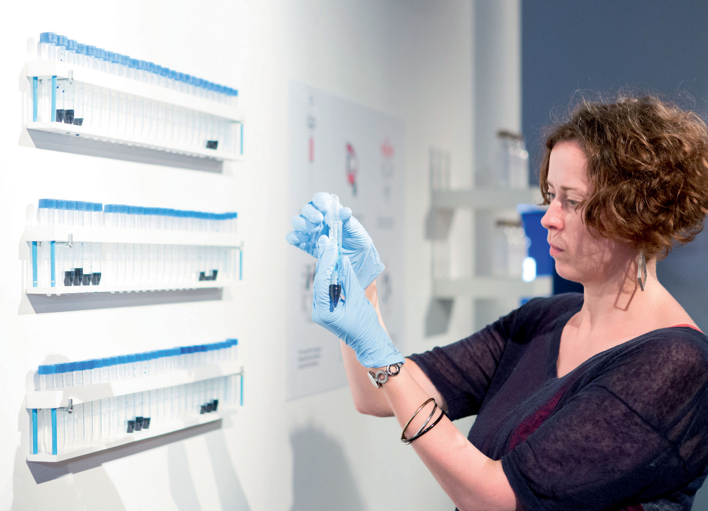 The core of the exhibition consists of a set of interactive visitor labs. Education and communication are not a side program but the central component in this exploration of art and science. The labs are surrounded by exploratory displays featuring outstanding artistic works as well as R&D prototypes—atelier and laboratory meld together here. Between these areas, we find references to the rich history of the liaison of art and science. To quote Merriam-Webster dictionary, a laboratory is “a place providing opportunity for experimentation, observation, or practice in a field of study.” Although in our common understanding of laboratories, we tend to see them as places where highly secret experiments are conducted and high-cost equipment is used. Places where access is only granted to those who have a good relationship to the people working there or a mandate to enter them. They are where processes take place that have a direct impact on knowledge.