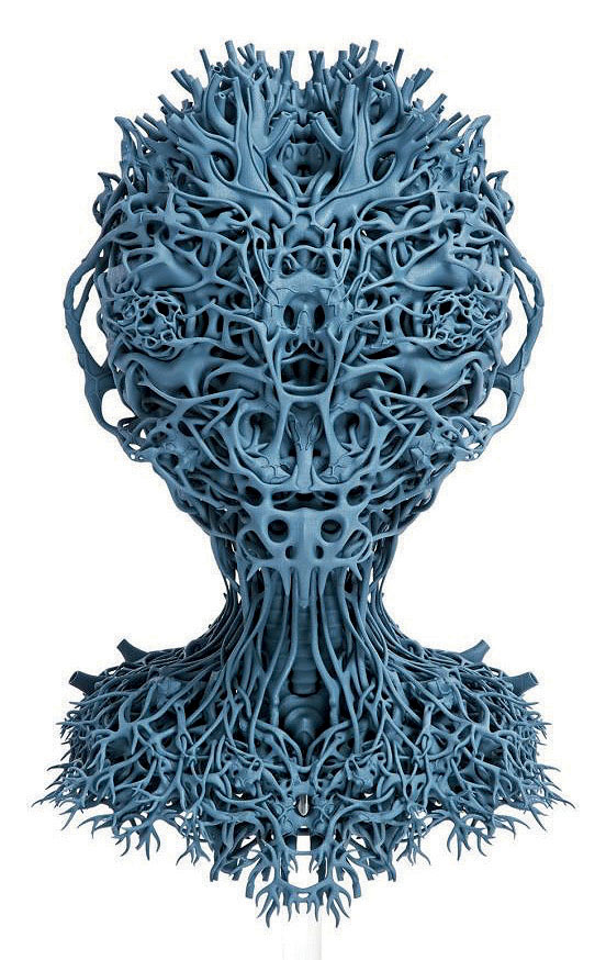 ............ Another artwork on display is by Belgian artist Nick Ervinck. For AGRIEBORZ he used images of human organs that he found in medical manuals as construction material for creating organic forms, and then realized them in 3D. With his work he is questioning, on the one hand, the impact of rapid prototyping and 3D printing for medical research and, on the other hand, the influence of bioprinting technology in generating organs. Ervinck, who is working parallel to science, is developing new realities for different audiences in art, science, and beyond.