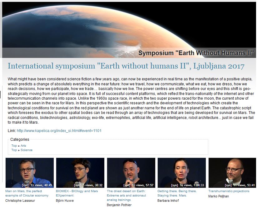 Earth Without Humans II symposium organized by Kapelica Gallery / Kersnikova Institute 2017