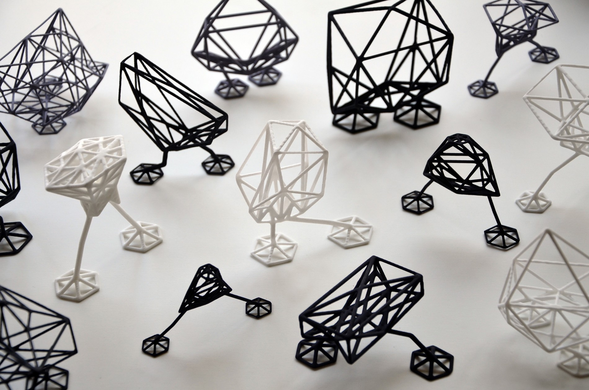 Utilizing the powers of 3D printing and anthropomorphism, Universal Everything creates a fleet of miniature vector robots. Looking like crystalline rocks that sprouted legs, these creatures are yet another exploration into harnessing the most basic elements of the human form to infuse inanimate objects with the essence of life.