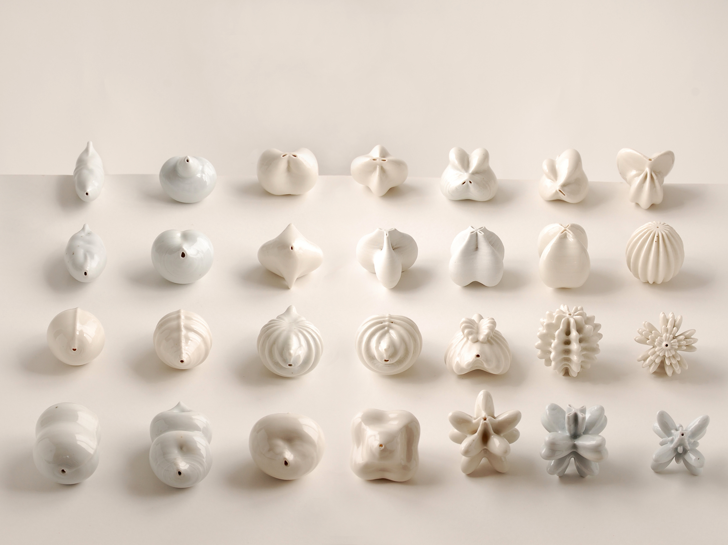 in computer code the working method lends itself to altering the code to make related and evolving shapes. Being able to 3D print these unique and individual forms directly from the computer in clay represents the strength of this technology and fulfills the artist`s desire to explore the possibilities of ceramic form.