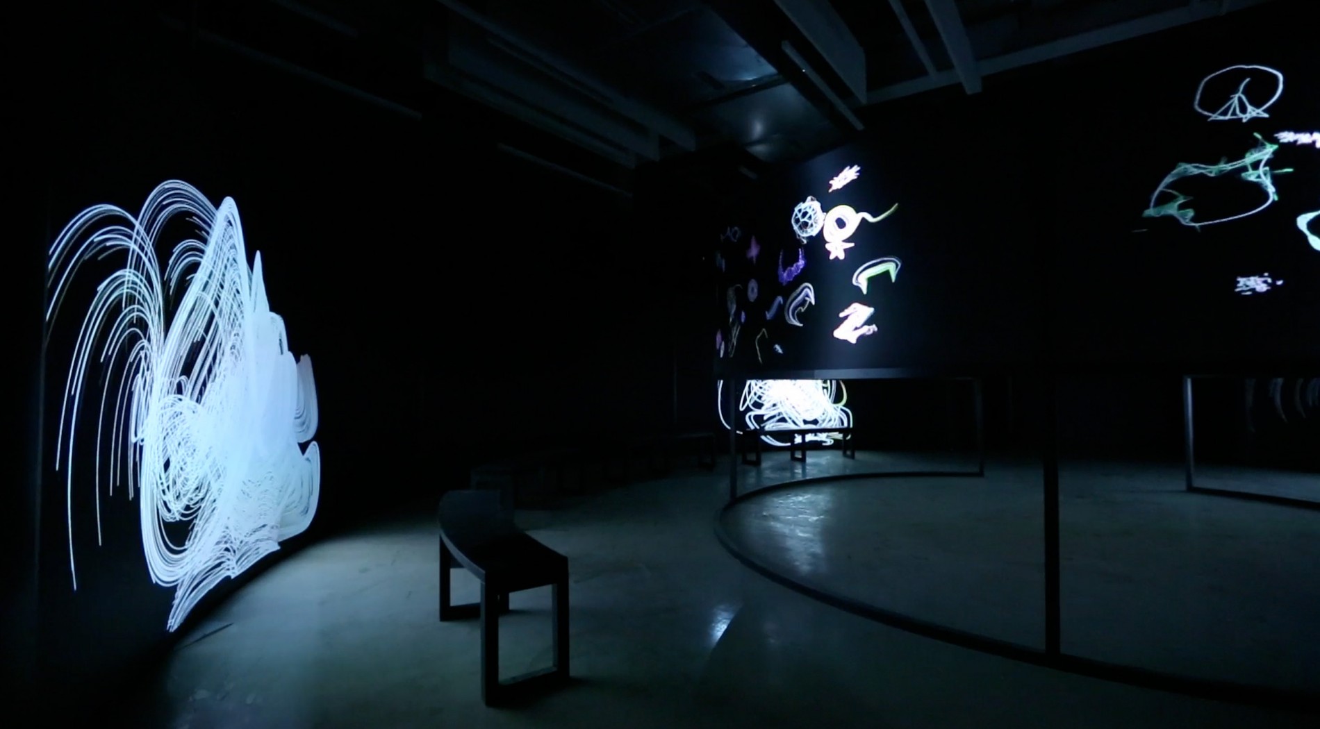 Photo showing the project Furnished Fluid by Akira Wakita (JP) at the Ars Electronica Center's Elements of Art and Science exhibition.