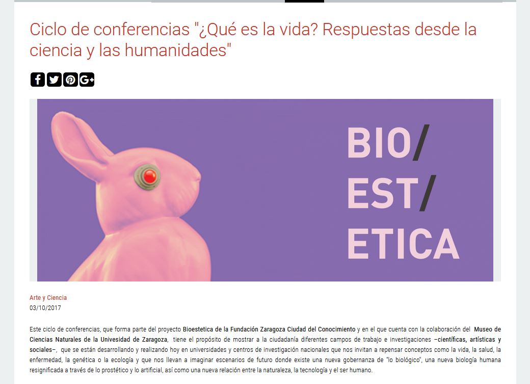 BIOESTETICA - symposia organized by Zaragoza City of Knowledge Foundation