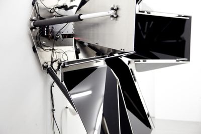 By intervening in this conversation the viewers become actors, as they degrade the communication by their presence and the noises they produce. As the panels move back and forth at a pace determined by the environmental sound, they create a non-immediate interaction, where the imperfections of reproduction become creative elements.