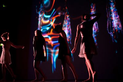 _Hidden Fields_ is the world’s first ever dance show driven by algorithms and mathematics from quantum dynamics. It is the result of a unique sci-art collaboration that has attracted significant international attention and press coverage. Fusing 3D imaging, rigorous quantum dynamics, gaming, dance and people, _Hidden Fields_ is an augmented dance performance that shows how our energy fields interact with the otherwise invisible atomic world around us. Its fusion of rigorous science, generative soundscapes and beautiful interactive visuals has led to the development of a new choreographic language that pushes the boundaries of our relationship with precise movement, science, spatial awareness and art.