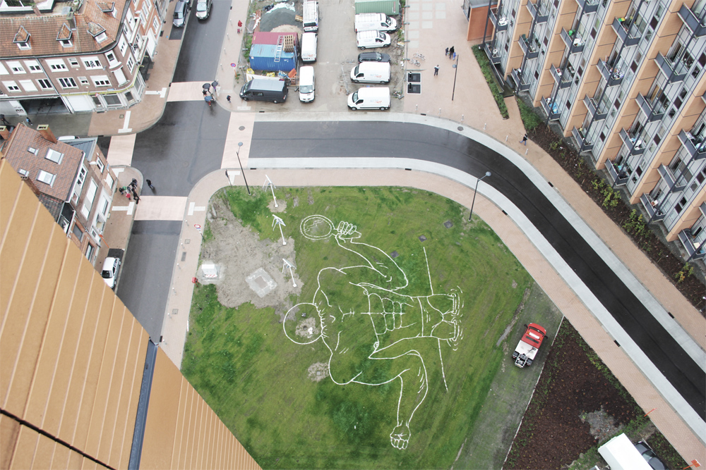 To add to the installation, I asked both Gijs Van Vaerenbergh (architects) and Wide Vernocke (illustrator) to make a personal contribution to this symbolic restoration. In doing so, *There is the Sun* became a collaboration that created a local context within which to present these different works. This context was literally in the garden in front of my workshop and office. What took place resulted in an *in-situ* project which created a local exchange between occupants, creators, the public and bystanders.