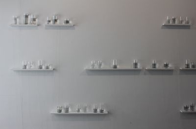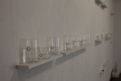 *Chijikinkutsu* is made using water, sewing needles, glass tumblers and coils of copper wire. The needles floating on the water in the tumblers are magnetized in advance, so they are affected by geomagnetism and turn themselves in a north-south direction. When electricity is supplied to the coil attached to the outside of the tumblers it creates a temporary magnetic field that draws the needle to the coil. And the faint sound of the needle hitting the glass resonates in the space all around. A MIDI is used to control the system. A DTM sequencer app running on an iPAD sends MIDI data signals to the controllers which were especially designed for the work, and they distribute serial data to each port, switching the electric current to the coils.