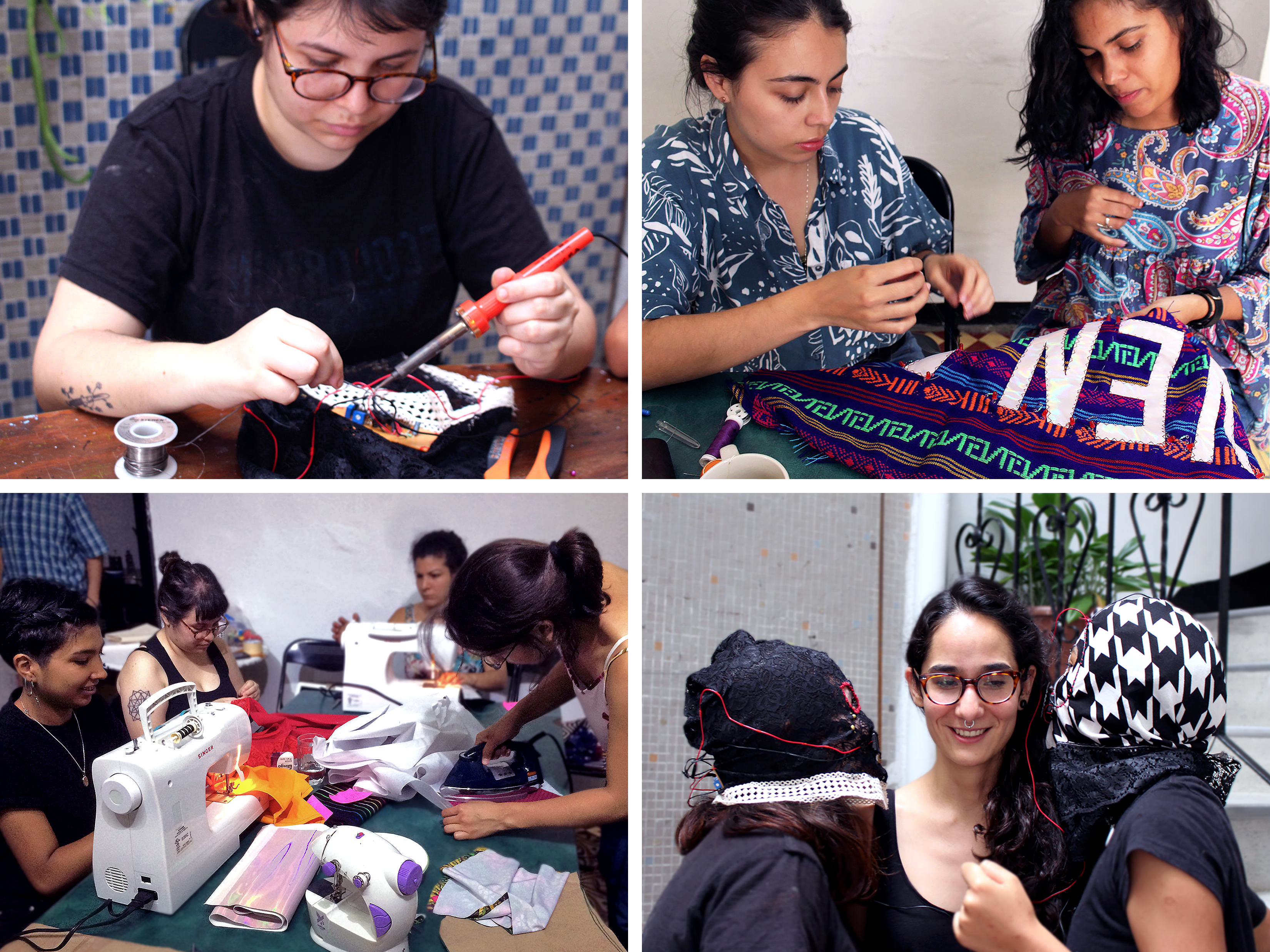 The third part consists of a series of artistic laboratories called “La Rebelión textil” \(The Textile Rebellion\). These laboratories aim to be convivial spaces for reflection and exchange of knowledge, as well as for the appropriation and collaborative creation of electronic textiles based on the initial prototype. The ultimate goal of these laboratories is to generate collective performative actions to activate these devices in public spaces, as a demand to recover our right to the city. Currently seven editions of La Rebelión Textil have been developed.