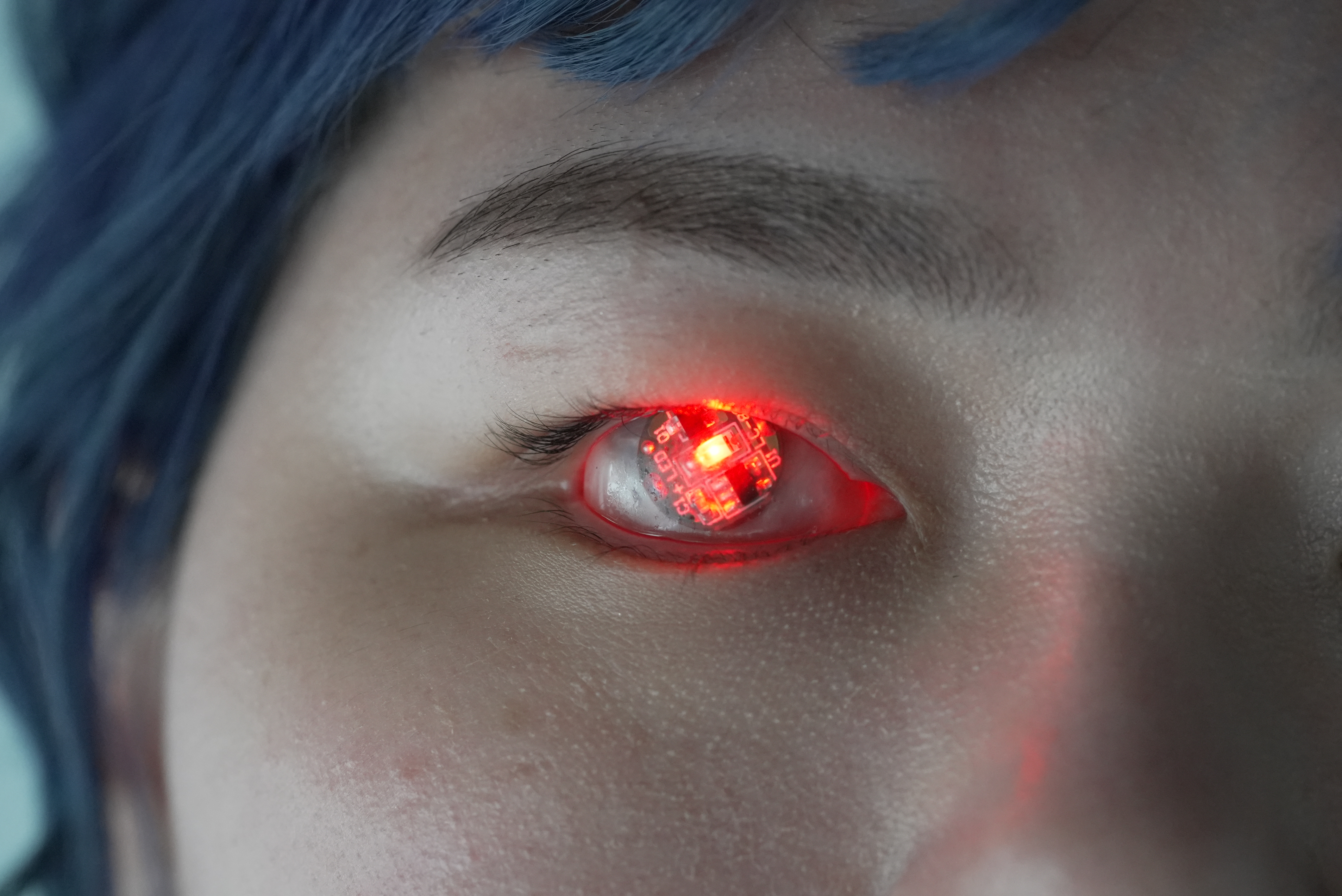 Against this backdrop, I am challenging societal preconceptions about prosthetic eyes through this project. The prosthetic eye that I created and I am wearing, has integrated a magnetic sensor, an LED light, and a battery encapsulated in medical-grade acrylic resin. This enhances the prosthetic eye, which becomes an object of desire for individuality and self-expression instead of a mere orbital prothesis. The eye gets lit up by a magnet sensor. This prosthetic eye leaves a strong impression on people and encourages a new perception about prosthetic eyes.