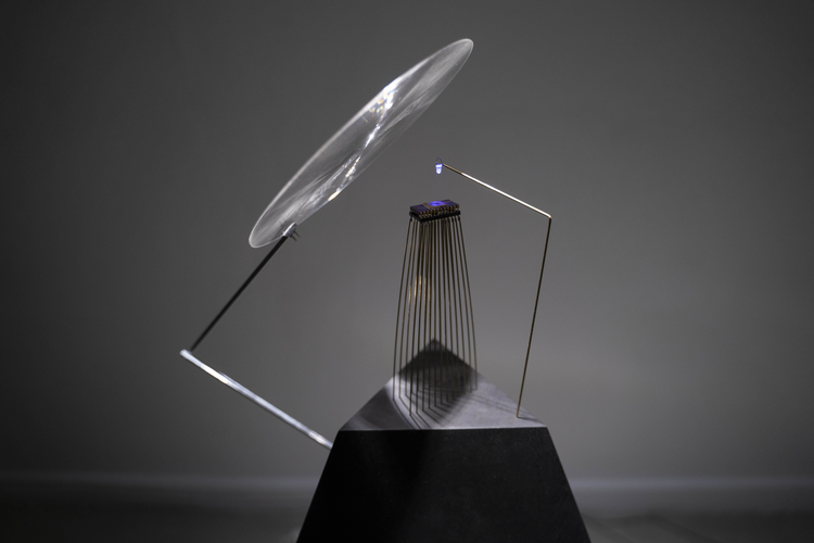 Mineral Amnesia explores in sound the evolution and decay of the first erasable programable silicon memory. Encapsulated under quartz windows, made of pure crystal, EPROMS, now outmoded microchips, lose information once exposed to light. The installation salvages EPROMs from different generations and plays them in real time under discrete UV light until their sounds are eroded and disappear.