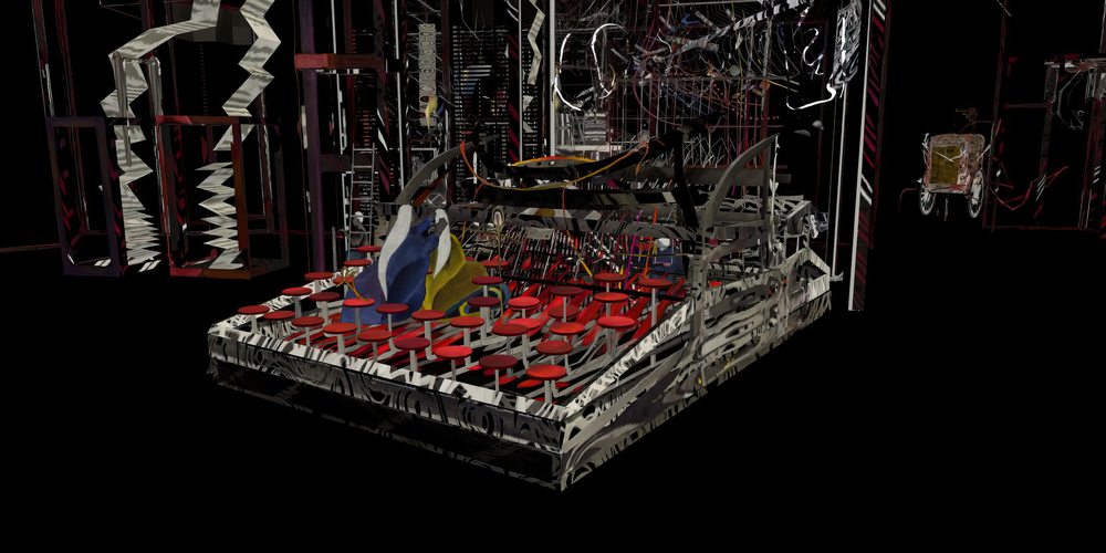 Boris Labbé is also attached to the typical motif of traditional Japanese painting, the Fukinuki Yatai technique (translated as "roof removed") which represents the interior of a building, seen from above, without a ceiling. Through this composition, he explores the multiplicity of points of view, the interconnected narrative relationship, the almost encyclopedic panoramic composition, and the issues of composition of geometries, motifs, and characters. Boris Labbé is looking for several ways to express the material of the drawing: to make it “overflow, crack, crackle, proliferate, live”. Drawing has always been central to his life and has been nourished by several encounters and projects: from classical drawing to 3D animation, and from virtual reality to performance and video installation.