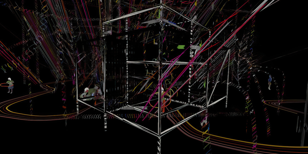 Boris Labbé’s Ito Meikyū invites the viewer to step through the looking-glass of his celebrated hand-drawn universe and wander inside it. For his first venture into virtual reality, the director translates his filigree line work into a vast, multi-layered labyrinth whose imagery is woven, both literally and conceptually, like embroidery. Fragmentary scenes drawn from Japanese literature and art history unfurl as interlaced threads: fractal architectures, calligraphed glyphs, bodies at work on gigantic looms, enigmatic machines that spin infinity into pattern.