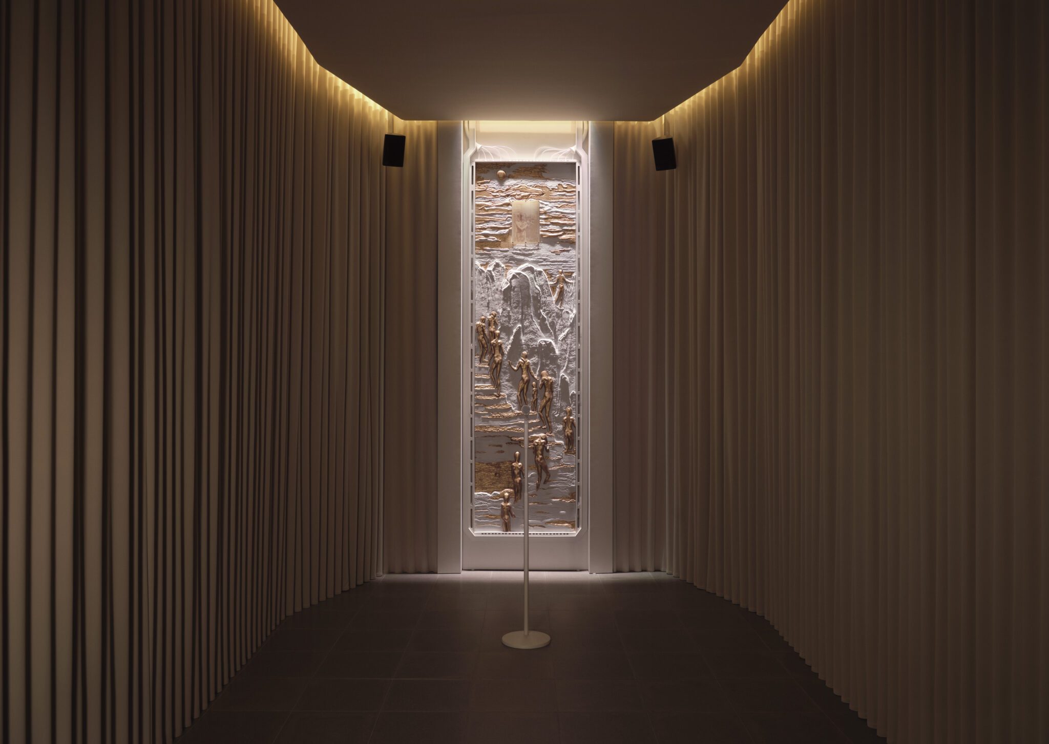 The interactive spatial audio installation uses the models to activate the exhibition space. These new artifacts for gathering and ritual, co-designed by SUB, offer us renewed insight into the networked and collective nature of human creation in the 21st century.